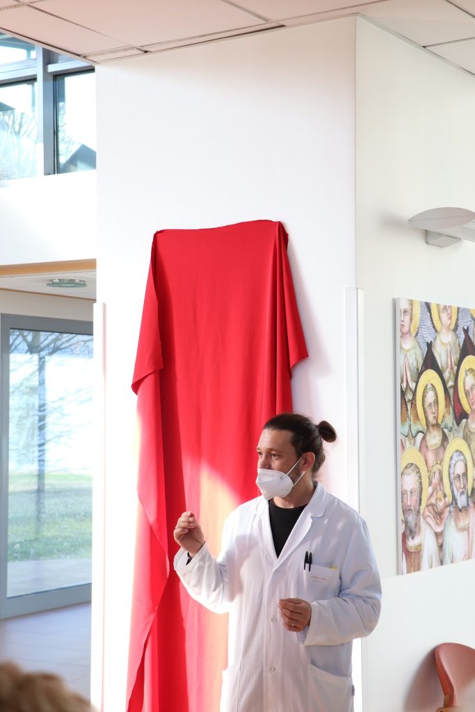 Durante l’inaugurazione, avvenuta alla presenza del direttore Mons. Roberto Ravazzolo, di Mons. Mario Morellato, del direttore sanitario, dott. Domenico Rossato e dei rappresentanti dei vari Servizi Socio-Sanitari, gli ospiti del Nucleo diurno hanno tolto il telo rosso che copriva il dipinto che è stato collocato, come si diceva, nella sala ingresso in modo da essere visibile, da adesso, anche ai parenti e ai visitatori esterni.