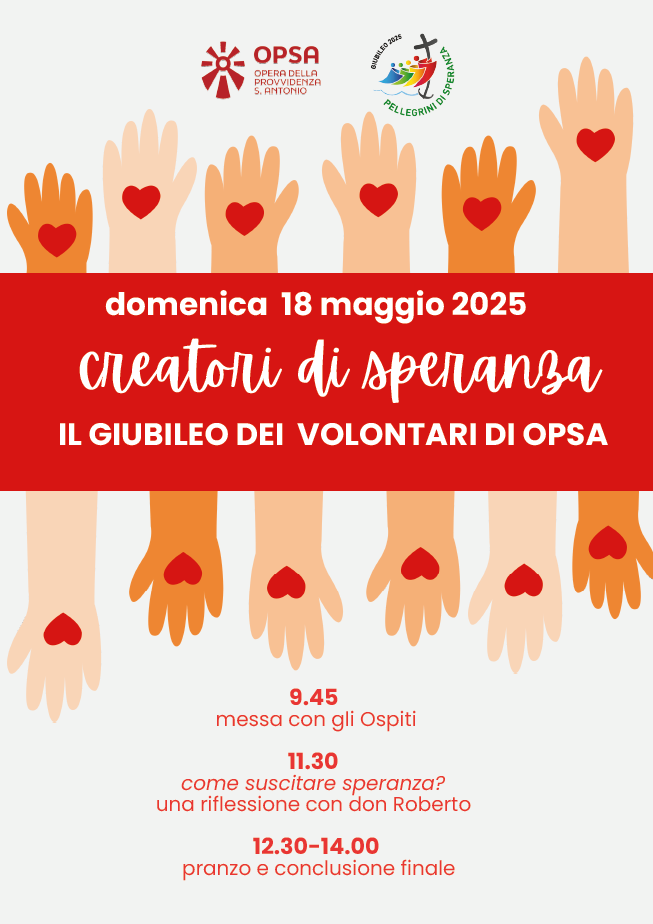 Il giubileo dei volontari dell’OPSA si celebra domenica 18 maggio.