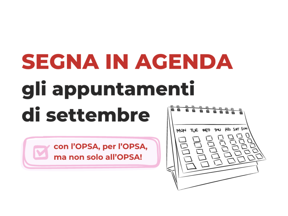 Ecco quindi sotto la lista degli eventi del mese di settembre che si terranno all’OPSA e sul territorio. Tenete d’occhio questo articolo, perché verrà periodicamente aggiornato con tutte le novità e i nuovi appuntamenti di questo mese.