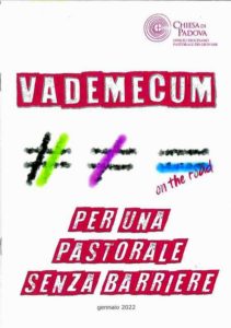 Sabato 19 febbraio, nel teatro dell’Istituto Barbarigo di Padova, alla presenza del vescovo di Padova mons. Claudio Cipolla e di suor Veronica Donatello, responsabile del servizio Cei per la pastorale delle persone con disabilità, è stato presentato On the road, VADEMECUM per una pastorale senza barriere – un prezioso compagno di viaggio pensato dall’équipe di Pastorale senza barriere nata in seno alla Pastorale dei giovani. Il VADEMECUM offre alcuni agili spunti pratici per la vita e le attività pastorali in modo da poter affrontare il tema della disabilità all’interno delle varie proposte diocesane con maggior cognizione di causa. Breve, chiaro e suddiviso in step in maniera tale che la buona volontà di tanti educatori, catechisti, formatori possa arricchirsi di piccole ma fondamentali attenzioni nei confronti della persona con ogni tipo di disabilità, al fine di non dover più improvvisare in questo campo e, invece, lasciarsi formare e scoprire le potenzialità dalla fragilità.